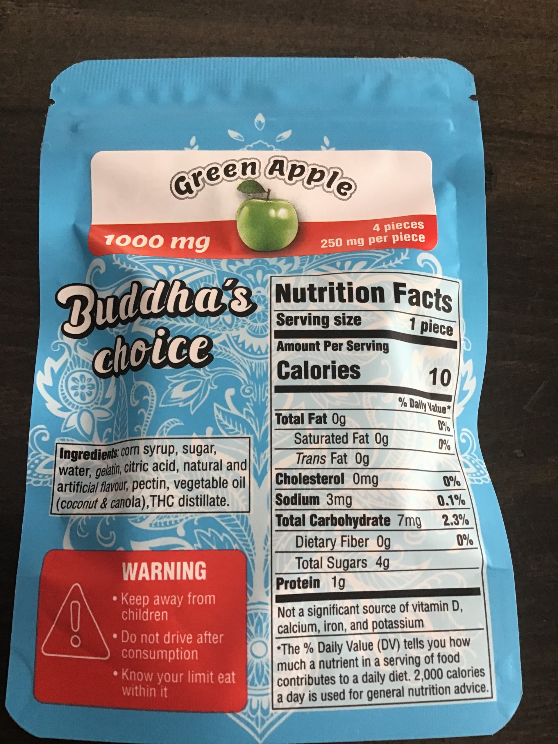 Total 1000mg of THC distillate (250mg Per-Piece)